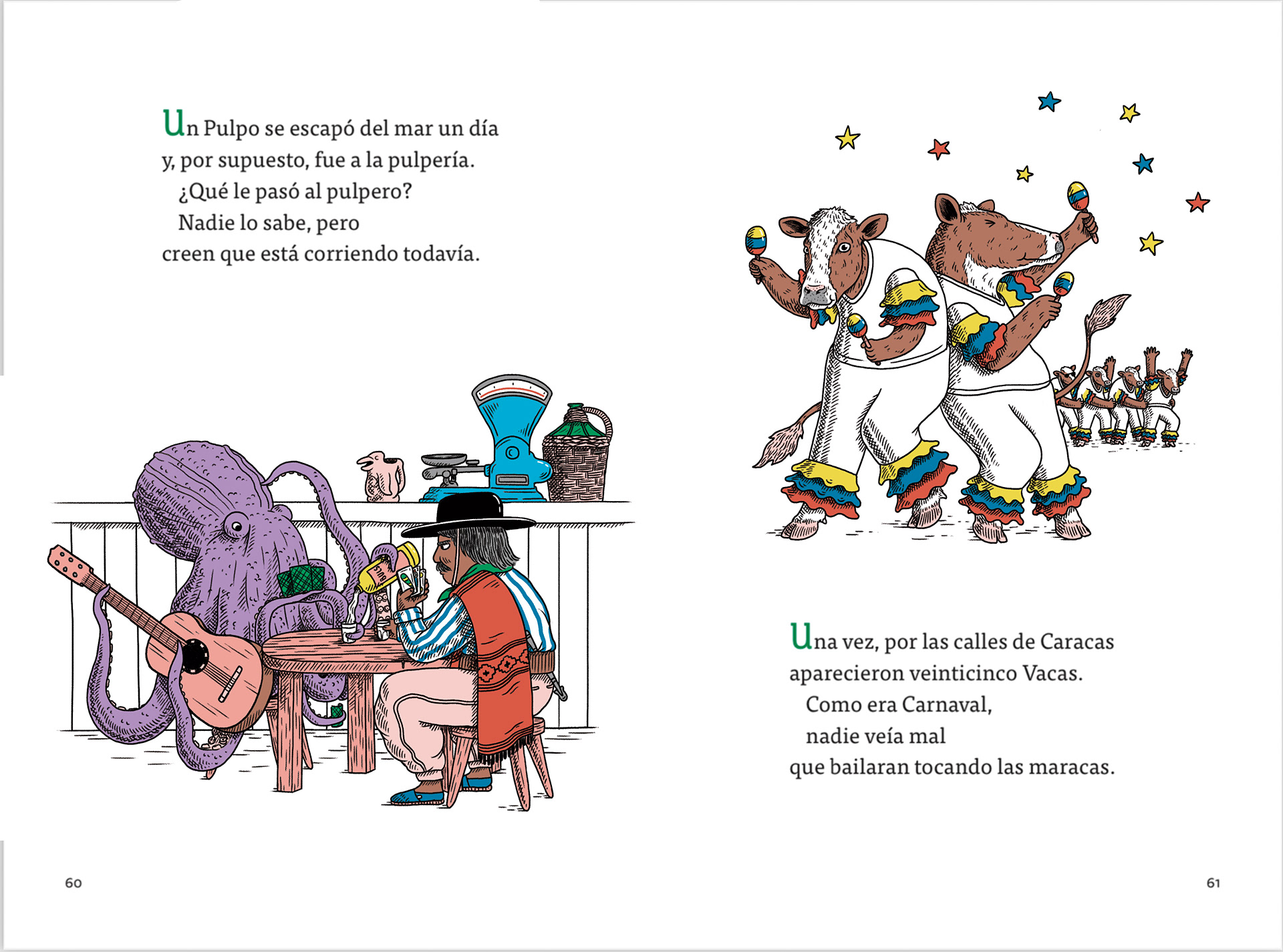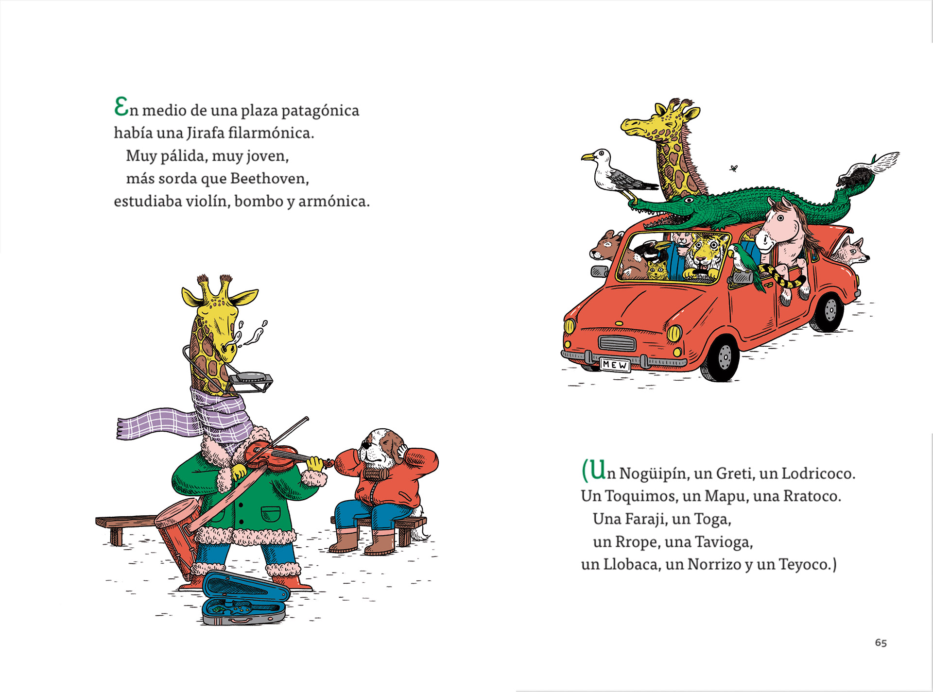 Illustrations for the book "Zoo Loco" by María Elena Walsh, republished by Penguin Random House. This book is part of a collection that won the 2024 ALIJA First Prize.